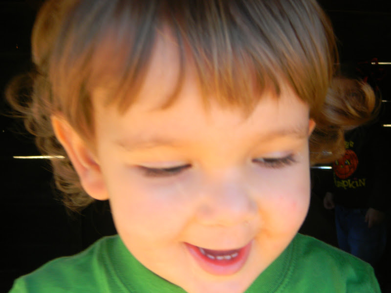 My mom and I took Payton to the Flower Mound Pumpkin Patch yesterday. Jenny and Donovan also came along! Even though its a far drive for us- it was worth it. All you pay is $5 for parking and everything else was free (unless you bought a pumpkin or food). They had hay rides, bounce houses, mazes, tons of cardboard cutouts, playgrounds, playhouses, tons of pumpkins, and things to do! Donovan and Pay had a great time and loved running around. The weather was perfect! Again, it's impossible to get Payton to take a good picture or even look at the camera so here are the best we got :)